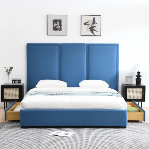 : Wood Quality: They primarily use Sheesham (Rosewood), Oak, and Walnut. Many of their bed designs feature "Fabricated" headboards combined with solid wood side tables.