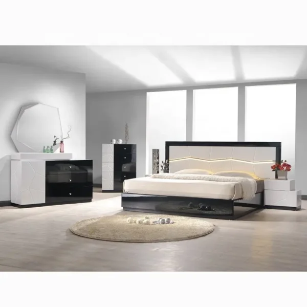 Modern Deco Beds Set. New creative look. The best color scheme.White & Deco Paint work.The super creative theme for home. Solid sheesham wood & MDF Work.It is king size bed. Two side tables & Dresser .Multi drawer side table.Further it has Beautiful Deco Color Scheme on Head Board & Side Tables.