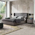 Beautiful Bed with Simple Metal Legs Side Table Design.