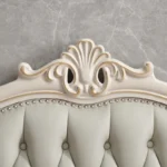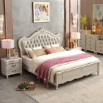 Bed with White Deco & Head Board White Tufted Cushion Work.