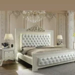 Bed with White Deco & Head Board White Cushion Tufted Work.