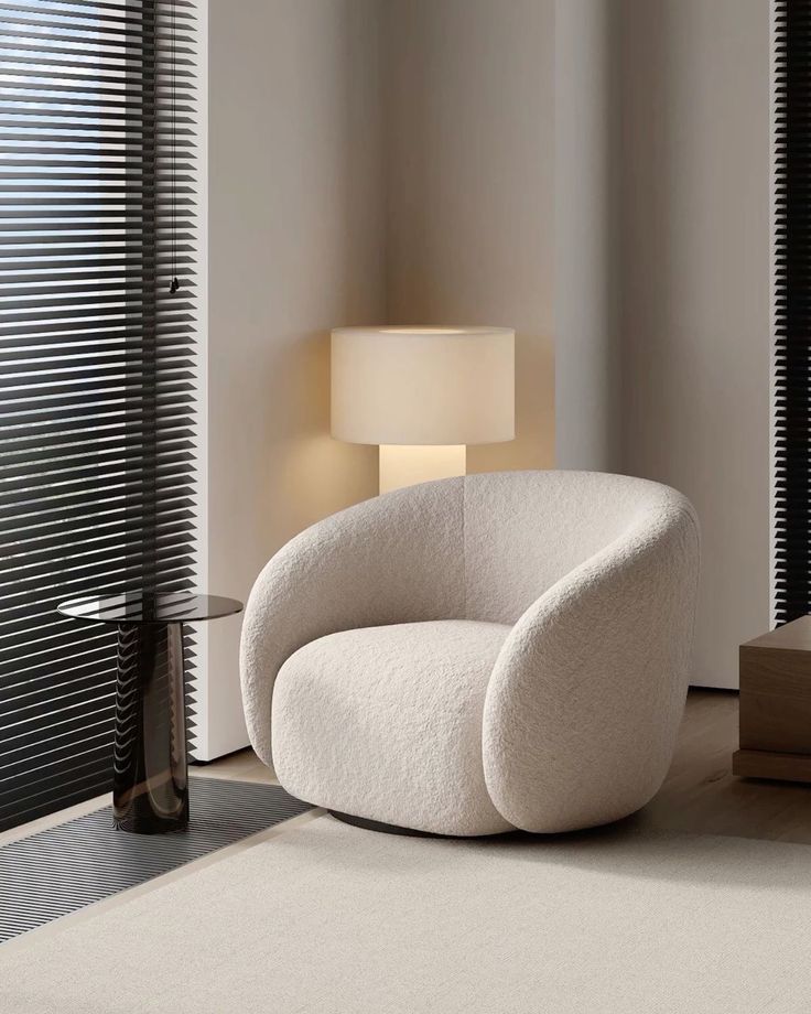 Chair with beautiful Boucle Velvet off White Color Fabric Cushion Work.