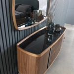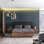 Bed with Natural Polish & Leather Fabric Cushion Work.