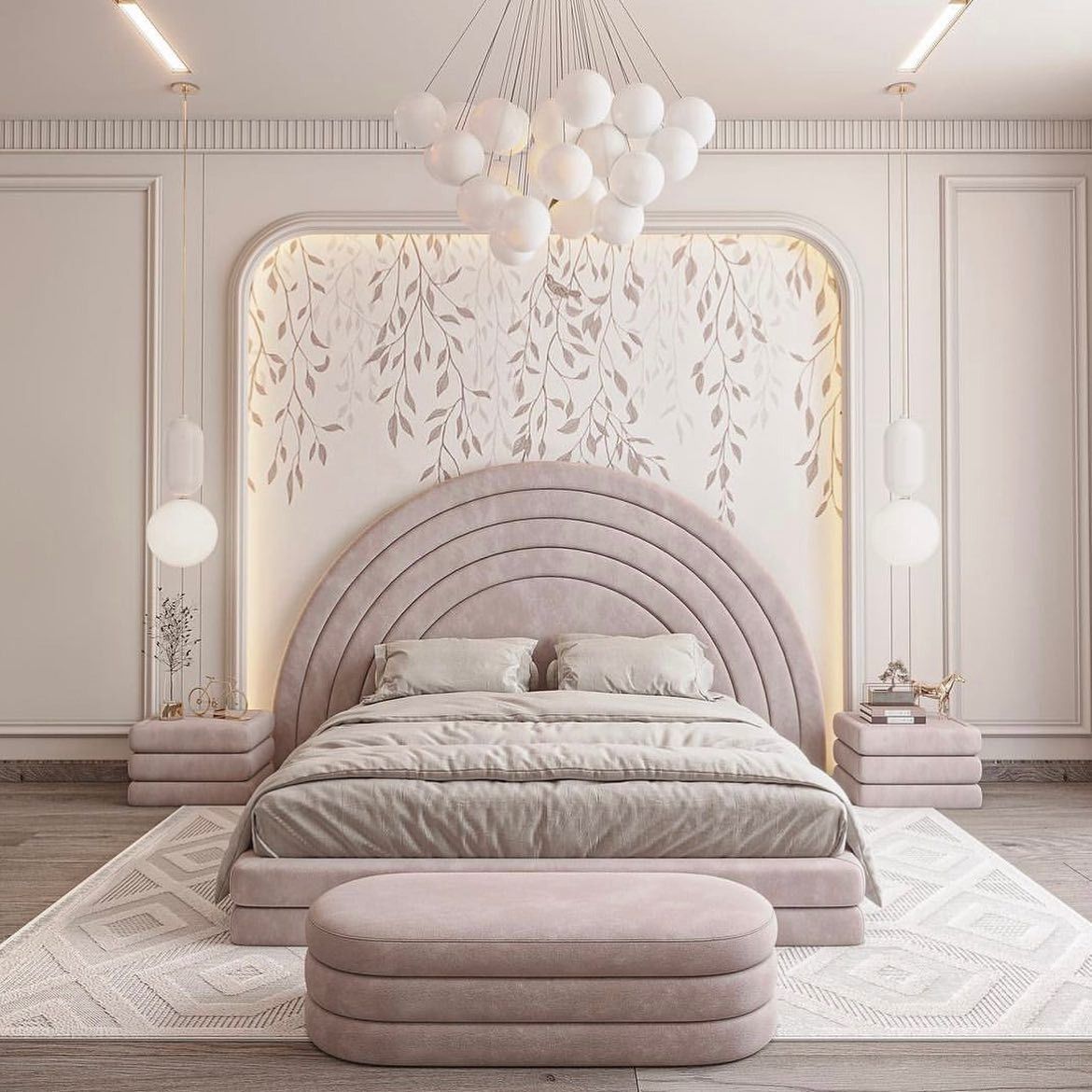 Bed With Velvet Fabric with Rounded Cushion Design.