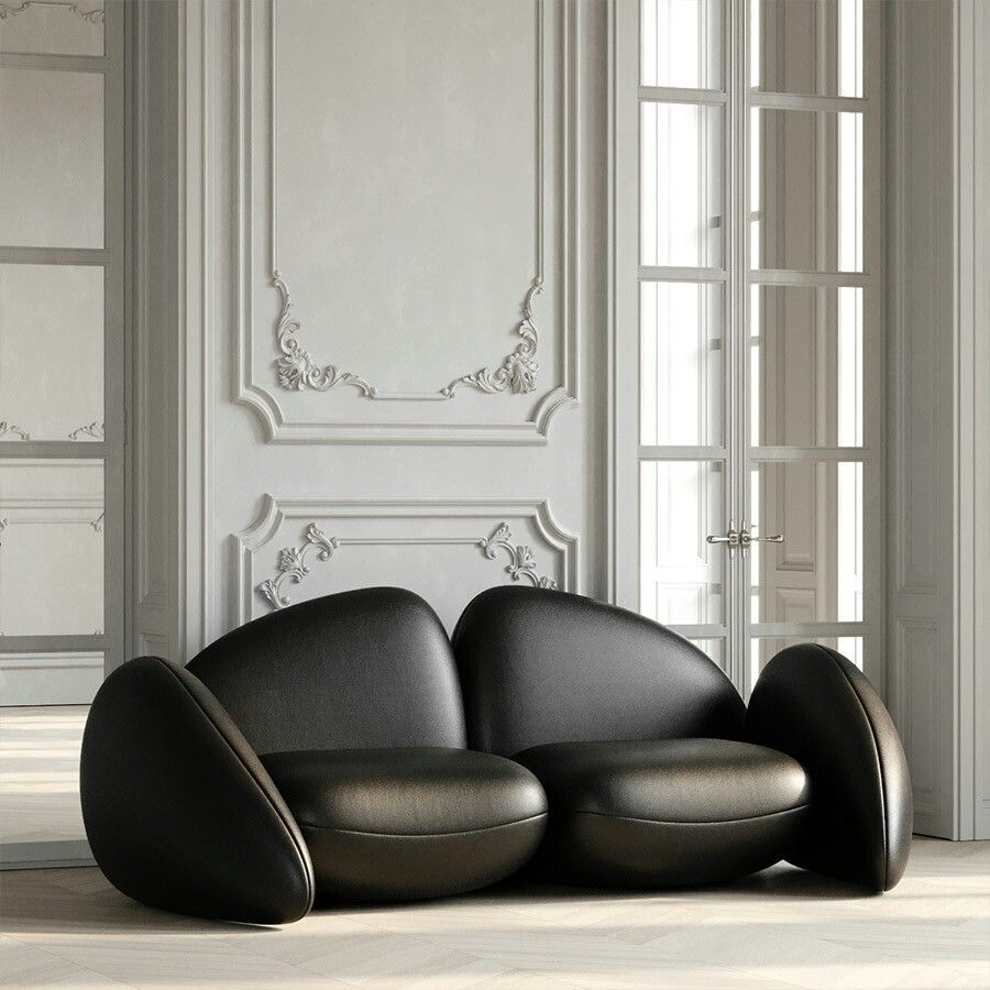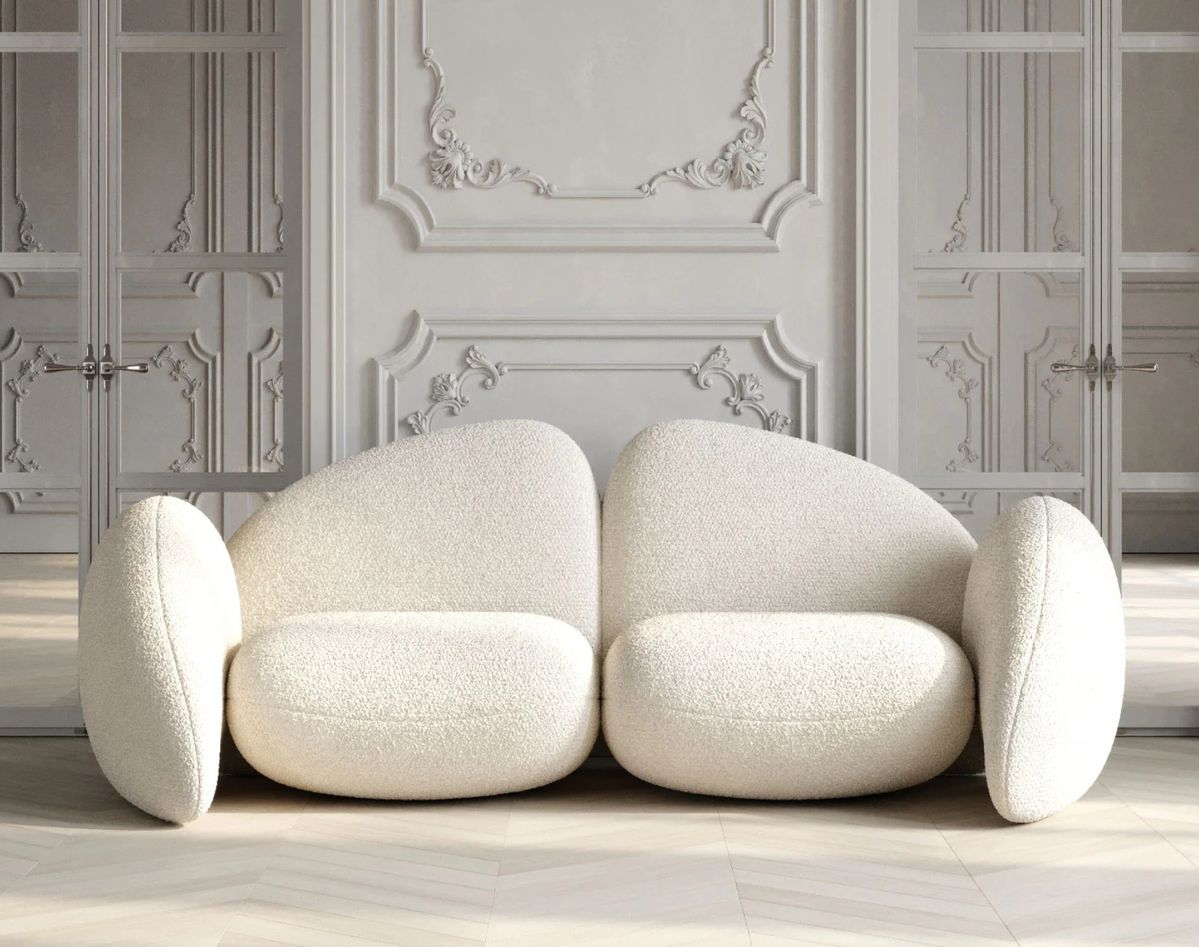 Sofa with beautiful Boucle fabric Phone Color Fabric Cushion Work.