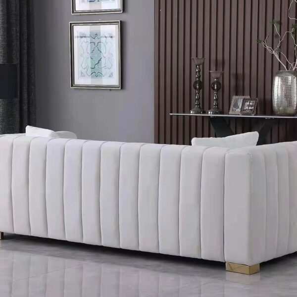 Three Seater With Narrow line Strip Sofa Set Design.