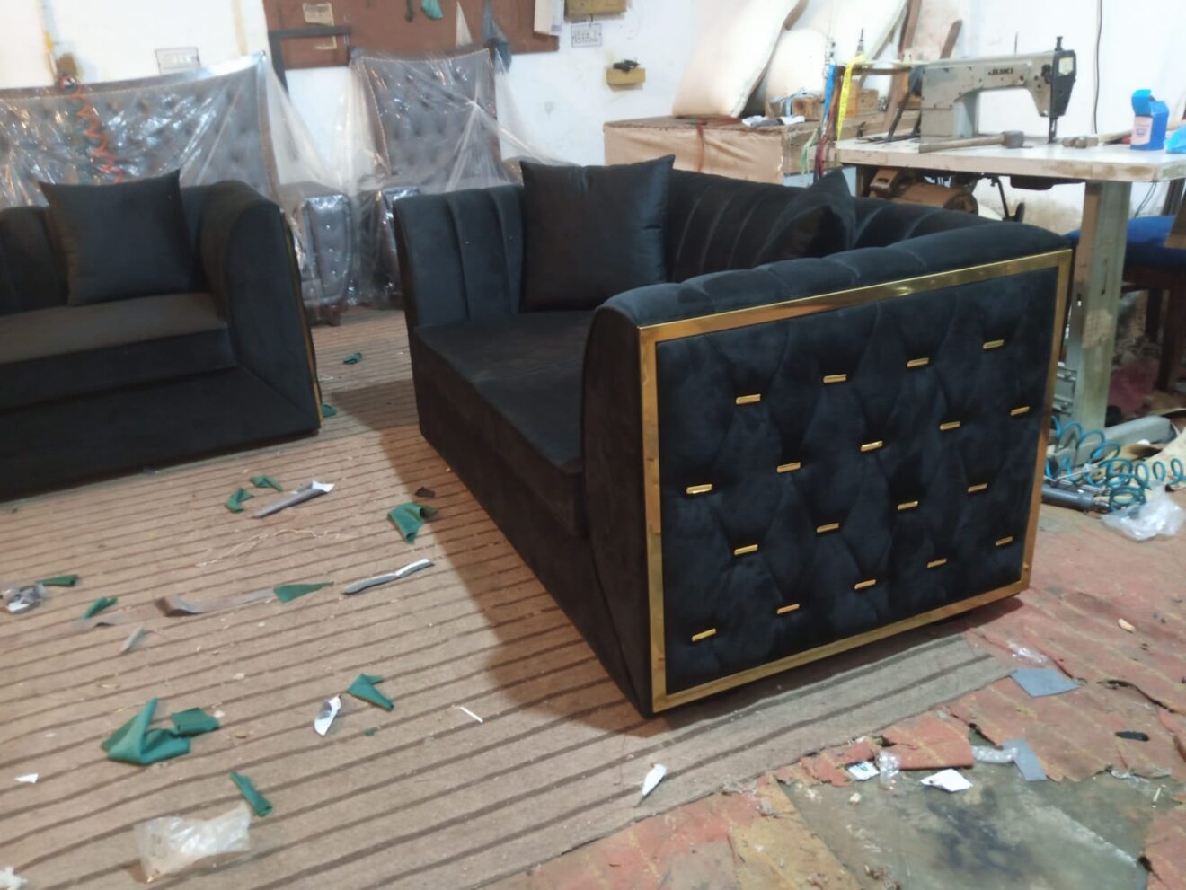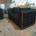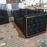 Sofa with beautiful Black Velvet Fabric Cushion Work.