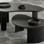 Wooden Base With Black Polish Work & Kidney Shape Top.