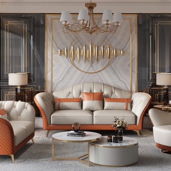 Three Seater Sofa Set with Beautiful Slightly Carved Arm Design.